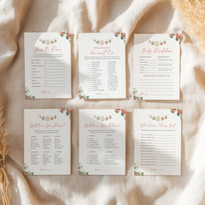 This listing is for 18 editable baby shower games and activities. The templates are editable instantly at Corjl.com. Corjl is an online editing software that allows you to access and edit your template right in your browser. Your purchase includes the following 5x7" games and answer keys: