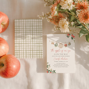 Celebrate a little one on the way with this apple baby shower invitation! This is a template that you can edit yourself at Corjl.com, then download and print with a printing service of your choice or send as a digital invitation.