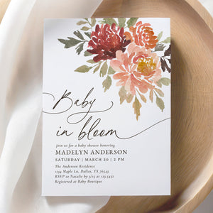 Baby In Bloom Fall Floral Baby Shower Invitation