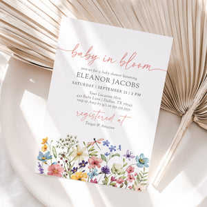 Celebrate a little one on the way with this wildflower baby shower invitation! This is a template that you can edit yourself at Corjl.com, then download and print with a printing service of your choice or send as a digital invitation.