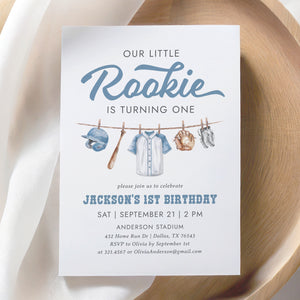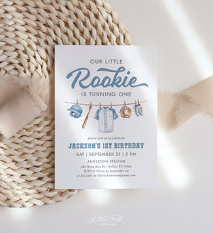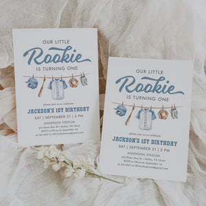 Celebrate your little one's special day with this baseball themed birthday invitation! This is a template that you can edit yourself at Corjl.com, then download and print with a printing service of your choice or send digitally.