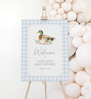 Blue Gingham Duck Baby Shower Welcome Sign Template