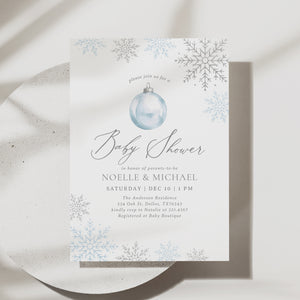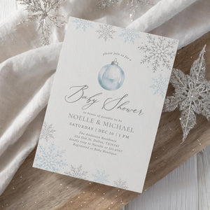 Celebrate a little one on the way with this ornament baby shower invitation! This is a template that you can edit yourself at Corjl.com, then download and print with a printing service of your choice or send as a digital invitation.