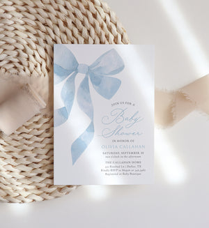 Celebrate a little one on the way with this ribbon baby shower invitation! This is a template that you can edit yourself at Corjl.com, then download and print with a printing service of your choice or send as a digital invitation.