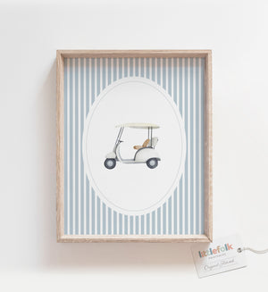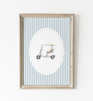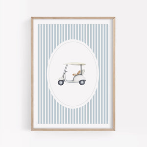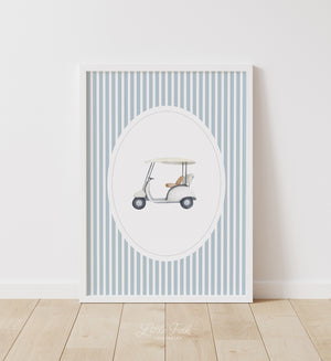 Blue Vintage Golf Cart Print