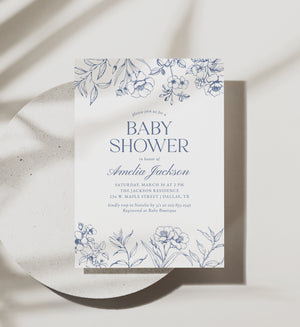 Celebrate a little one on the way with this chinoiserie baby shower invitation! This is a template that you can edit yourself at Corjl.com, then download and print with a printing service of your choice or send as a digital invitation.