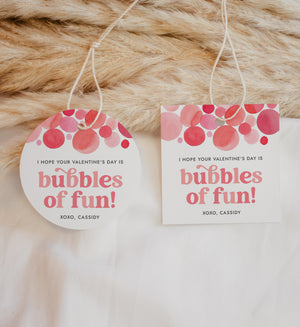 Add a finishing touch to your child's Valentines with this bubble themed tag. This is a template that you can edit yourself at Corjl.com, then download and print at home or with a printing service of your choice.