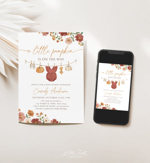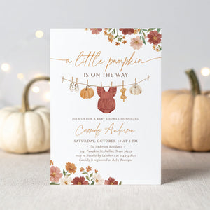 Burgundy Floral Little Pumpkin Baby Shower Invitation