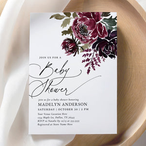 Celebrate a little one on the way with this floral baby shower invitation! This is a template that you can edit yourself at Corjl.com, then download and print with a printing service of your choice or send as a digital invitation.