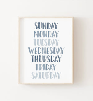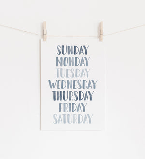 Introduce your kiddo to the days of the week with this hand-lettered watercolor poster. Decorate a wall in your little one's nursery, bedroom, or playroom with this educational print to encourage learning everyday.