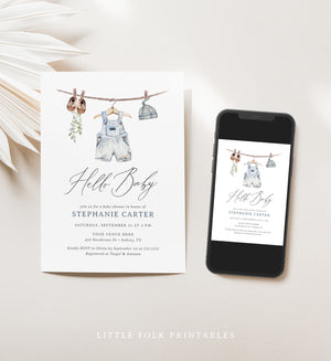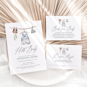 Editable Boy Baby Clothes Baby Shower Invitation Suite Template - Set of 3