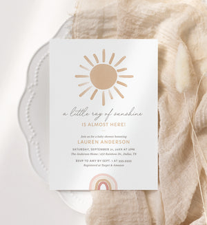 Editable Pink Little Ray of Sunshine Baby Shower Invitation Template