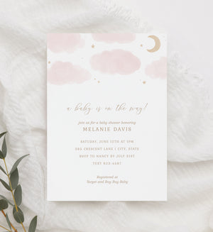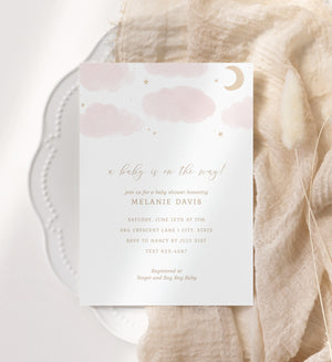 Editable Pink Moon and Stars Baby Shower Invitation Template