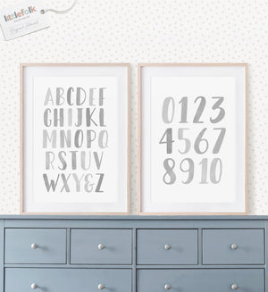 Introduce your kiddo to their ABC's and their numbers with these matching hand-lettered watercolor posters. Decorate a wall in your little one's nursery, bedroom, or playroom with these educational prints to encourage learning everyday.