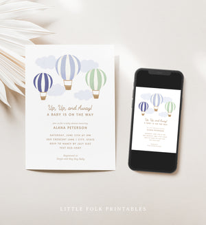 Editable Hot Air Balloon Baby Shower Invitation Template
