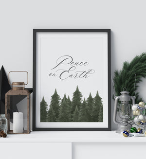 Decorate your home for the holidays with this beautiful illustrated 'Peace on Earth' print! With printable artwork, you can download, print, and trim your art within minutes or send it to your local print shop.