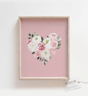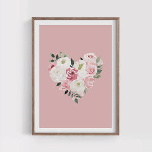 Pink Floral Heart Print