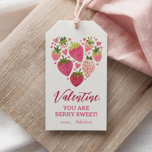 Add a finishing touch to your child's Valentines with this strawberry themed tag. This is a template that you can edit yourself at Corjl.com, then download and print at home or with a printing service of your choice.