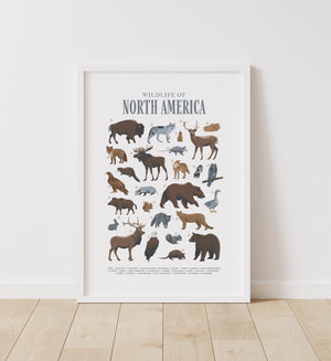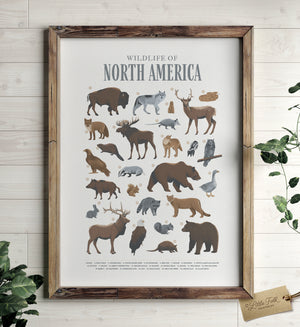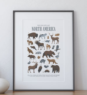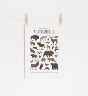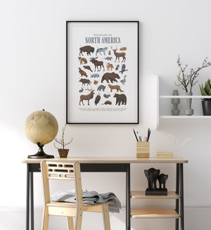 Teach your little one about the animals of North America with this beautifully illustrated print.