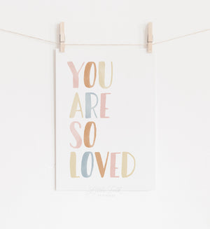 Brighten up your little one's nursery, bedroom, or playroom with this "You Are So Loved" print.