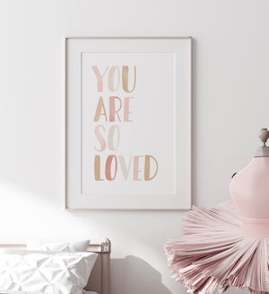 Brighten up your little one's nursery, bedroom, or playroom with this "You Are So Loved" print.