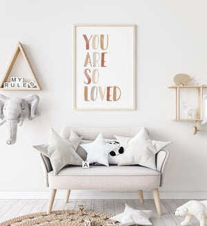 Brighten up your little one's nursery, bedroom, or playroom with this "You Are So Loved" print.