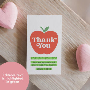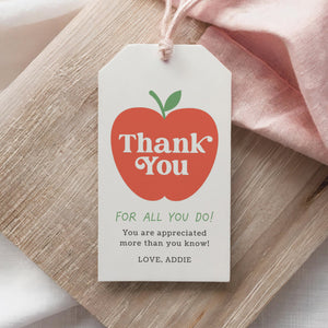 Add a finishing touch to your teacher appreciation gifts or favors with this printable tag. This is a template that you can edit yourself at Corjl.com, then download and print at home or with a printing service of your choice.Corjl is an online editing platform that allows you to access and edit your template right in your browser.