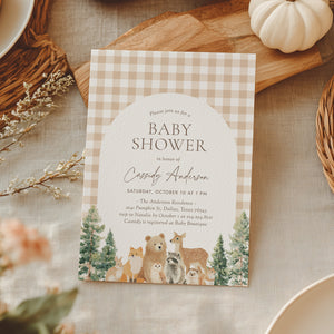 Celebrate a little one on the way with this woodland baby shower invitation! This is a template that you can edit yourself at Corjl.com, then download and print with a printing service of your choice or send as a digital invitation.