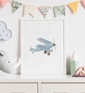 Let's fly! This vintage biplane is perfect for and adventure or travel themed room.
