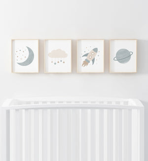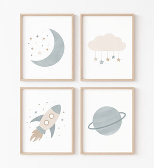 Decorate your little one's outer space themed room with this set of 4 watercolor prints!