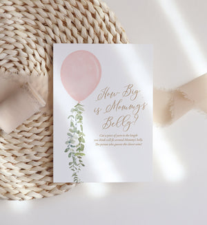 This listing is for an instant download, print-ready 'How Big is Mommy's Belly sign in the pink watercolor balloon baby shower theme. The following files will be included with your purchase: