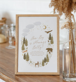 This listing is for an instant download, print-ready 'How Big is Mommy's Belly sign in the woodland baby shower theme. The following files will be included with your purchase: