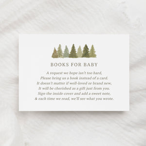Request that friends and family bring a book instead of a card to you or your loved one's baby shower with this woodland themed 'books for baby' insert! This is a template that you can edit yourself at Corjl.com, then download and print with a printing service of your choice.