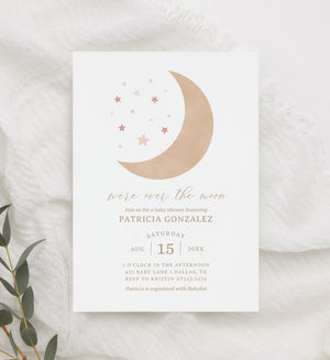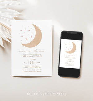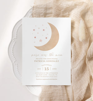 Editable Over the Moon Girl Baby Shower Invitation Template