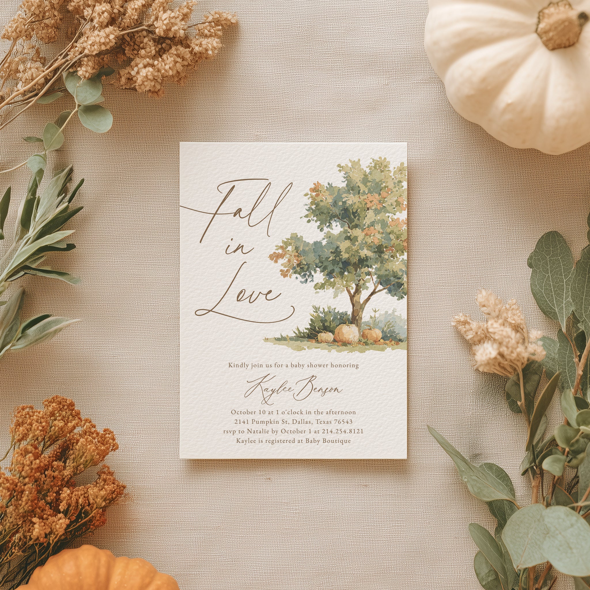 Celebrate a little one on the way with this fall baby shower invitation! This is a template that you can edit yourself at Corjl.com, then download and print with a printing service of your choice or send as a digital invitation.