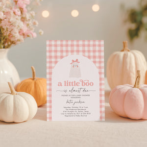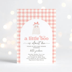Little Boo Pink Gingham Baby Shower Invitation