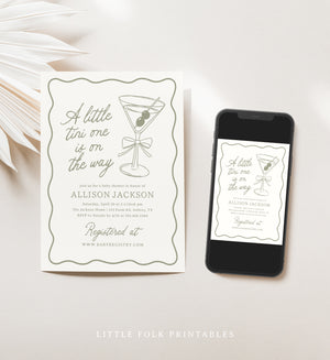 Celebrate a little one on the way with this martini baby shower invitation! This is a template that you can edit yourself at Corjl.com, then download and print with a printing service of your choice or send as a digital invitation.