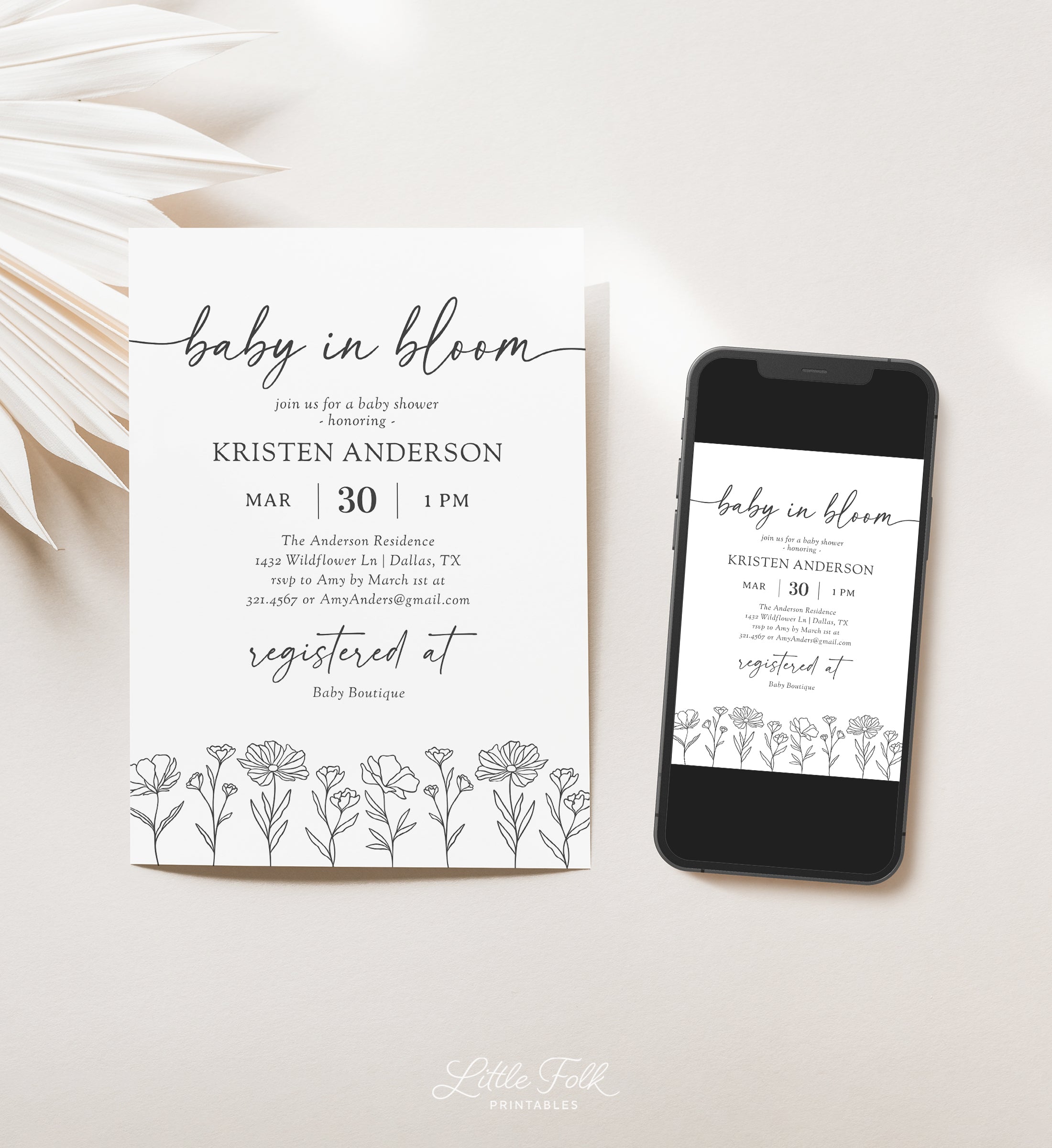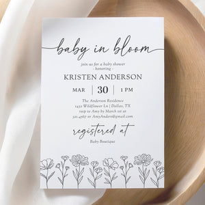 Minimalist Wildflower Baby Shower Invitation