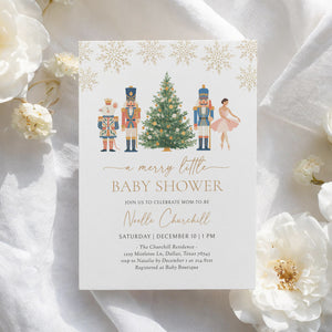 Celebrate a little one on the way with this Christmas baby shower invitation! This is a template that you can edit yourself at Corjl.com, then download and print with a printing service of your choice or send as a digital invitation.