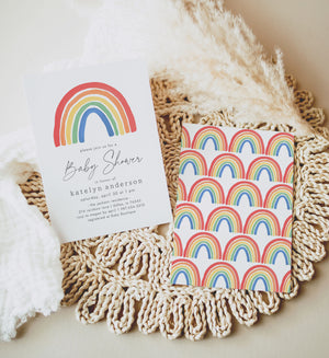 Celebrate a little one on the way with this rainbow baby shower invitation! This is a template that you can edit yourself at Corjl.com, then download and print with a printing service of your choice or send as a digital invitation.
