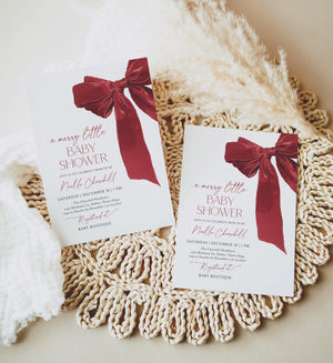 Celebrate a little one on the way with this Christmas baby shower invitation! This is a template that you can edit yourself at Corjl.com, then download and print with a printing service of your choice or send as a digital invitation.