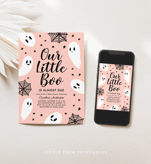 A Little Boo is Almost Due Baby Shower Invitation Template (Pink)