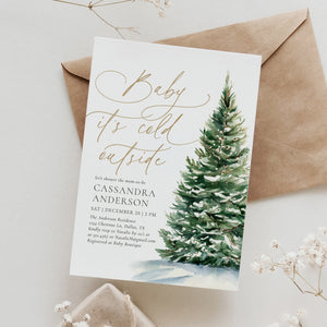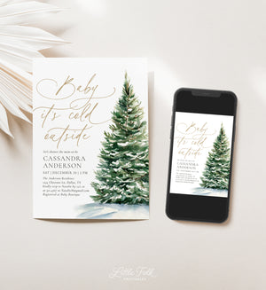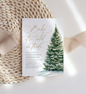 Invite friends and family to you or a loved one's baby shower with this elegant Christmas tree themed invitation! This is a template that you can edit yourself at Corjl.com, then download and print with a printing service of your choice or send digitally.