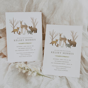 Celebrate a little one on the way with this woodland baby shower invitation! This is a template that you can edit yourself at Corjl.com, then download and print with a printing service of your choice or send as an evite.