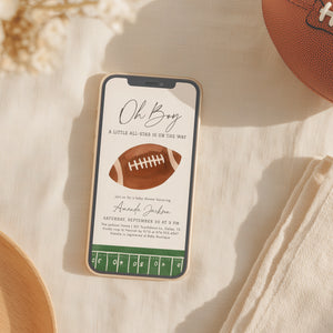 This listing is for an electronic football baby shower invitation template that you can edit yourself at Corjl.com. Corjl is an online editing software that allows you to access and edit your template right in your browser.
