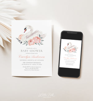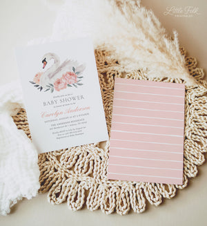 Celebrate a little one on the way with this swan baby shower invitation! This is a template that you can edit yourself at Corjl.com, then download and print with a printing service of your choice or send as a digital invitation.