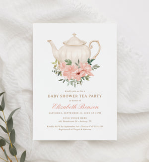 Celebrate a little one on the way with this tea party baby shower invitation! This is a template that you can edit yourself at Corjl.com, then download and print with a printing service of your choice or send as a digital invitation.