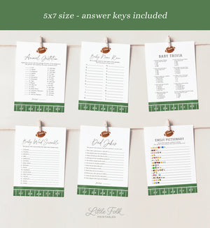 This listing is for 18 editable baby shower games and activities. The templates are editable instantly at Corjl.com. Corjl is an online editing software that allows you to access and edit your template right in your browser. Your purchase includes the following 5x7" games and answer keys: