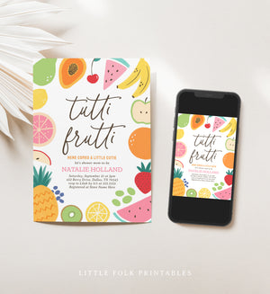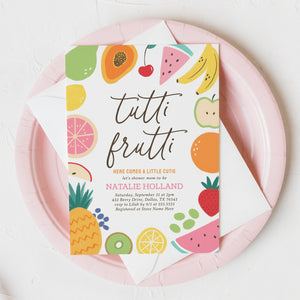 Celebrate a little one on the way with this fruit baby shower invitation! This is a template that you can edit yourself at Corjl.com, then download and print with a printing service of your choice or send as a digital invitation.