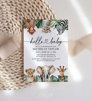 Celebrate a little one on the way with this safari baby shower invitation! This is a template that you can edit yourself at Corjl.com, then download and print with a printing service of your choice or send as a digital invitation.